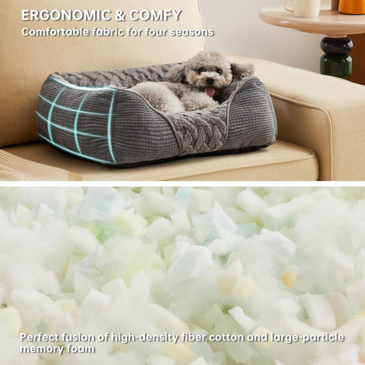 Large Dog Bed Sofa - Washable Orthopedic Dog Beds and Couch with Removable Flannel Cover, Waterproof Dog Pillow with U-Shape Bolster, Grey Squre Pet Bed, 89X63X16Cm
